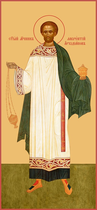 Troparion, tone 4: In his sufferings, Thy martyr Laurence O Lord, * received an imperishable crown from Thee, our God; * for, possessed of Thy might, * he set at naught the tyrants and crushed the feeble audacity of the demons. ** By his supplications save Thou our souls.