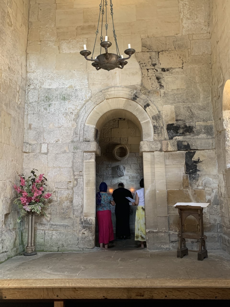 It was a blessing to be able to recognise their many journeys and great effort to support our services by travelling in the opposite direction to pray with them in Wiltshire and Somerset, making a few home visits – with Margarita’s home being blessed in the process – and to celebrate the feast of St Panteleimon with a pilgrimage visit to the beautiful church of St Laurence, at Bradford on Avon. As announced after Liturgy, this was a reconnaissance-visit prior to a parish pilgrimage, to hopefully be led by Bishop Irenei.