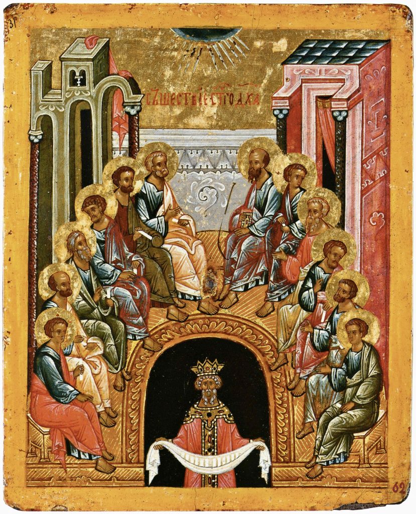 Of old the All-Holy Spirit taught the tongues of the Prophets to speak of things yet to come; and now by the tongues of the all-wise Apostles He also declareth the great deeds of God, having come Himself in the sound of a storm-like rushing wind.