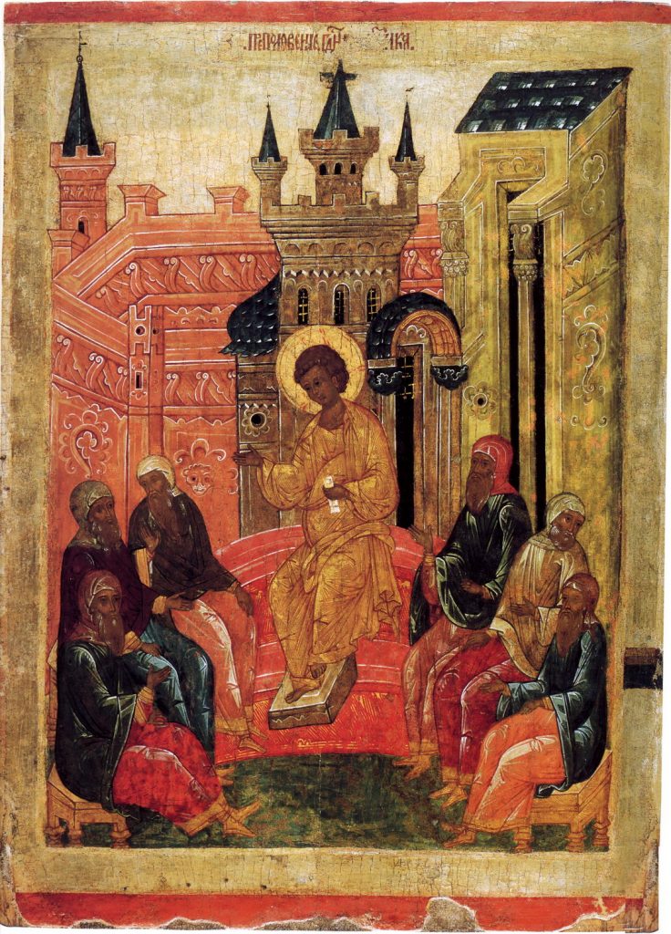 At the Judaic Mid-feast, O my Saviour, Thou didst go up to Thy temple and didst teach all. And the Jews marvelled and said: Whence knoweth this Man letters, having never learned?