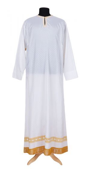 Then the deacon goeth to one side of the sanctuary, putteth on the sticharion, praying thus: My soul shall rejoice in the Lord, for He hath clothed me in the garment of salvation, and with the vesture of gladness hath He covered me; He hath placed a crown upon me as on a bridegroom, and He hath adorned me as a bride with comeliness.
