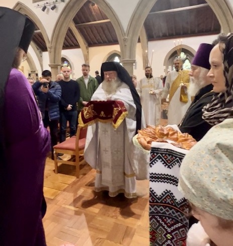 We are so very grateful to all who contributed so generously, and especially for Melangell who took on the role of Senior Sister, having this episcopal visitation as her first rather daunting duty, ceremonially starting with the welcome she offered to Vladika, with the traditional offering of bread and salt, after which the children of the parish offered posies of flowers to their bishop.