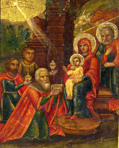 Behold! Christ, the restoration, cleansing, salvation and power of all, is come! The priceless Treasure is hidden within the cave! And the magi, enriched thereby, offer Him gold, as to a king.