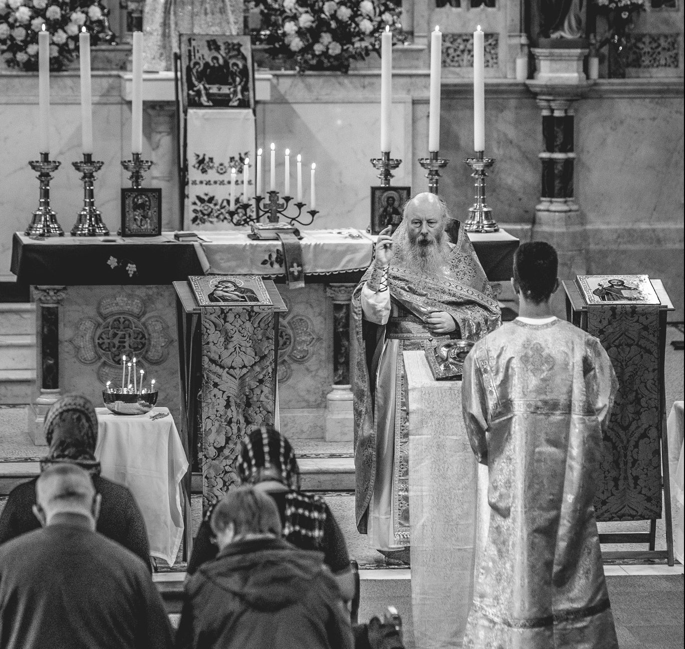 Theotokion in Tone VIII: In that thou art the most immaculate Bride of the Creator, the Mother of the Redeemer who knewest not wedlock, the receptacle of the Comforter, O all-hymned one, haste thou to deliver me, who am the vile abode of iniquity and in mind am the plaything of the demons, from their wickedness, and make of me a radiant dwelling place of the virtues, O luminous and incorrupt one. Drive from me the cloud of the passions and grant that I may partake of the never-waning light of the Most High, through thy supplications.