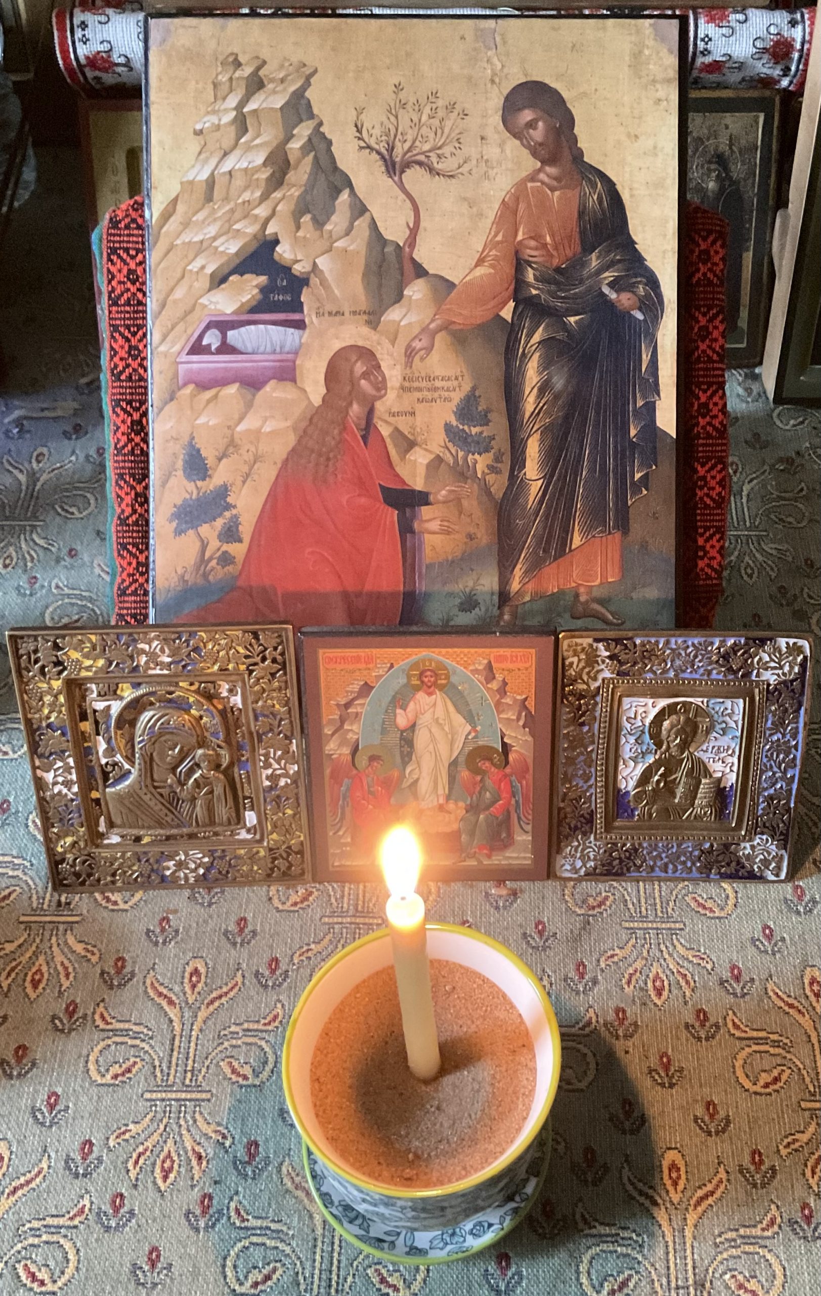 And so, I returned home with the icon “Noli me tangere” (Do not touch me), showing the Risen Lord appearing to the Holy Equal-to-the-Apostles, St Mary Magdalene. Though it was too late for the Sunday of the Myrrh-Baring Women, this icon will be ready for St Mary’s feast in July.