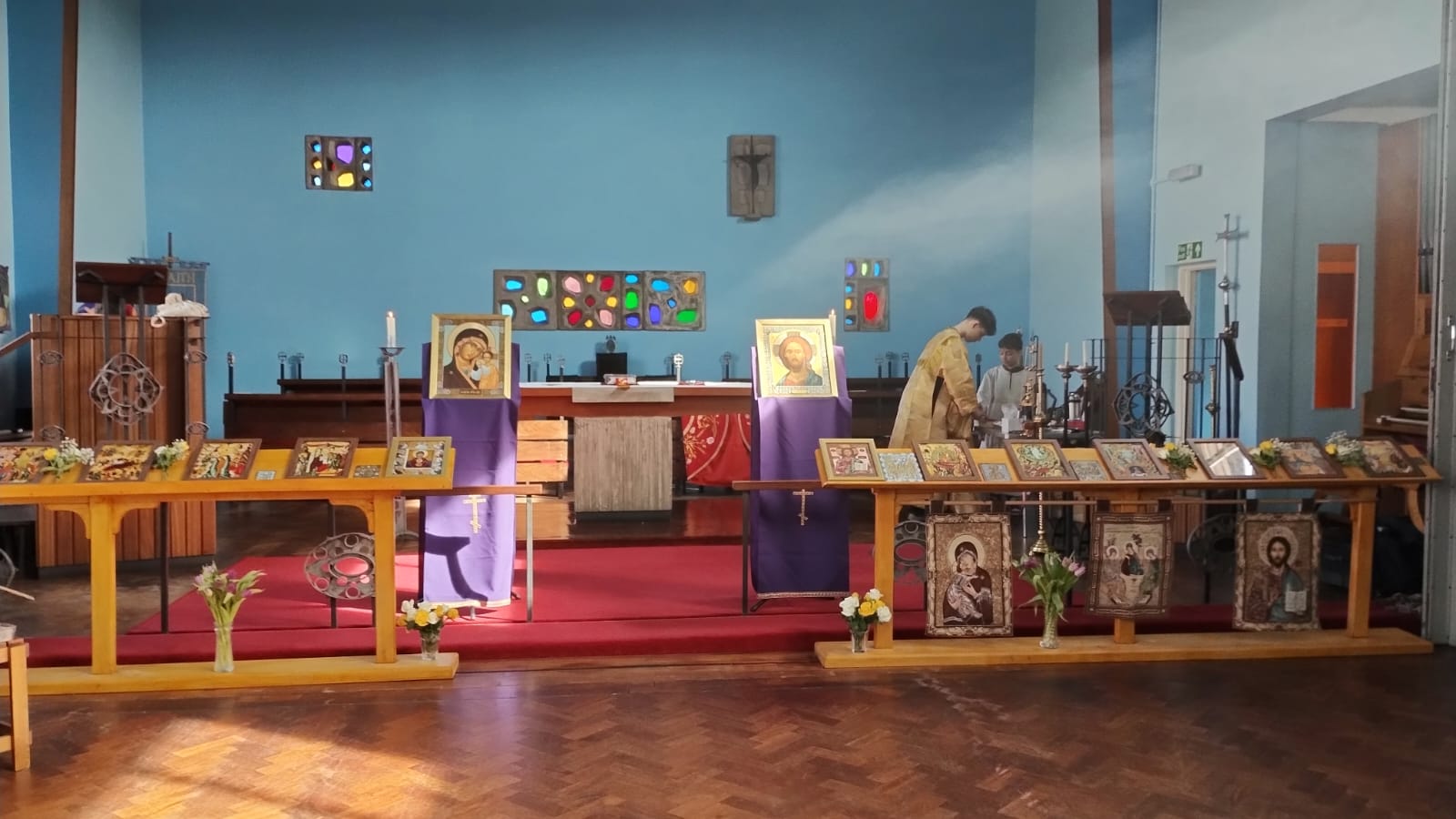 The layout of St Philip’s brought us all closer together and allowed for a more intimate celebration of the Liturgy, and though rather bare, it remains a setting in which to create an Orthodox place of prayer and worship, hence our encouraging everyone to share ideas of ways to do this.