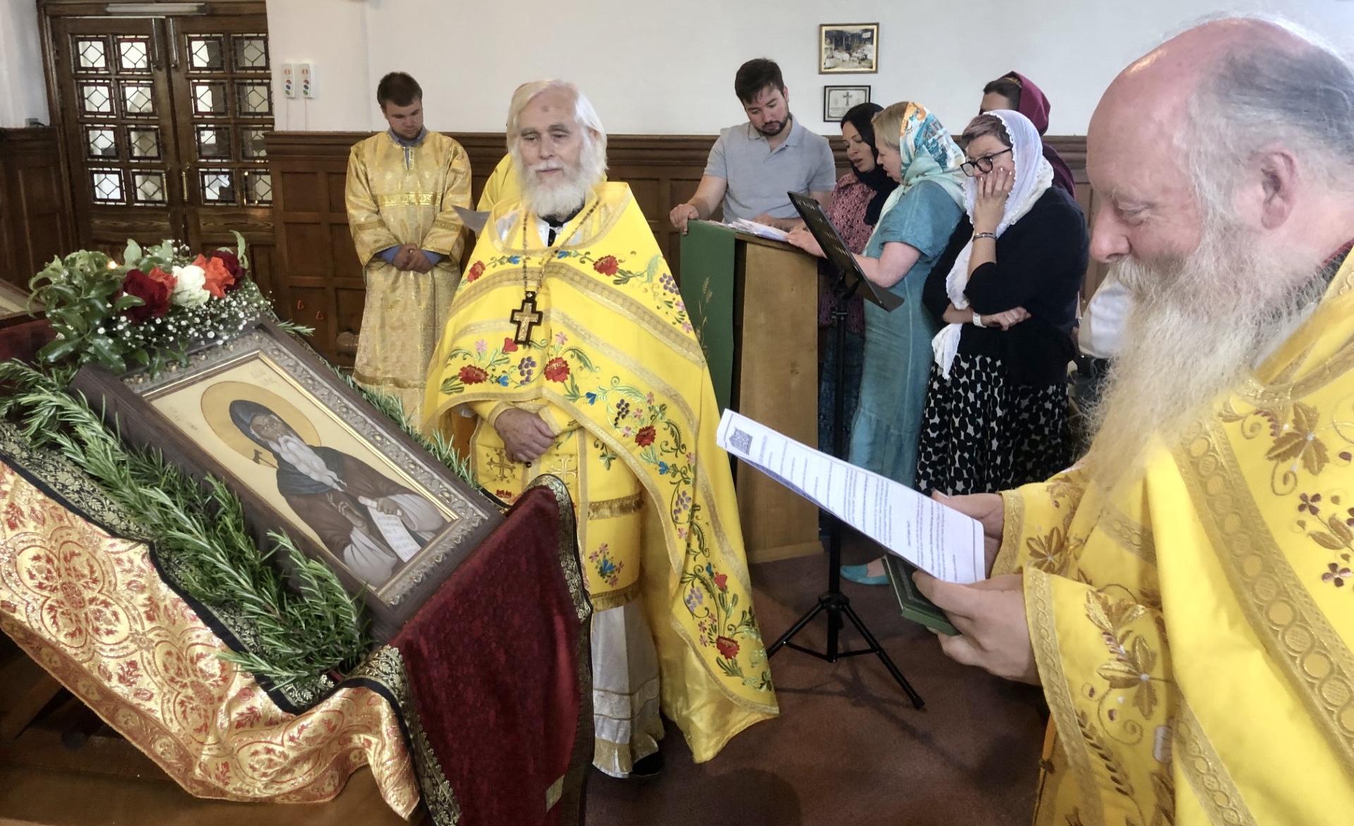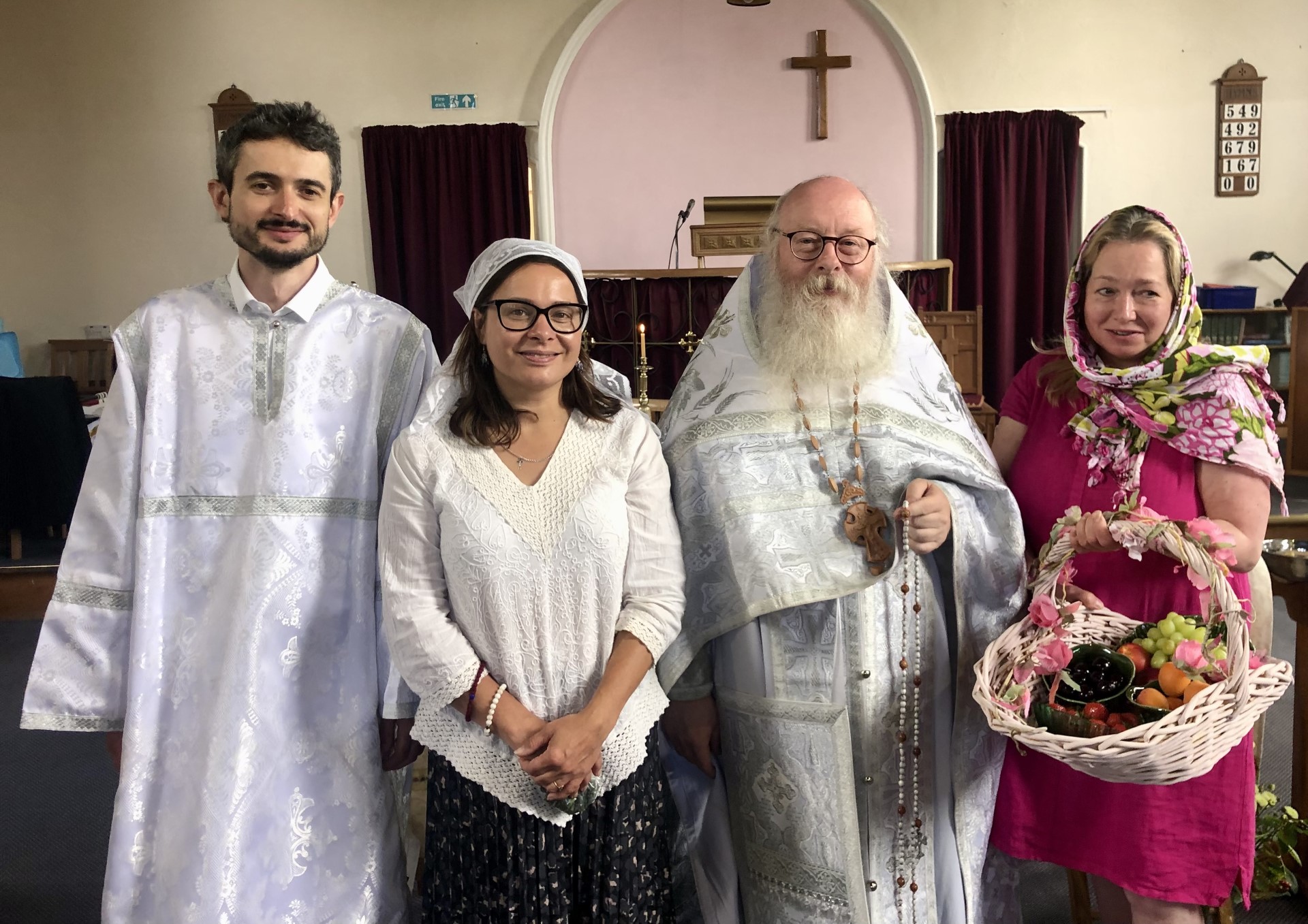 We are grateful to Masha and Margarita for chanting, especially given the festal chants unfamiliar to our usual singers, of whom several are away on holiday. Our Gloucestershire faithful were very enthusiastic in expressing their thanks, and were very happy to be joined by our ‘Wessex’ pilgrims for this wonderful feast.