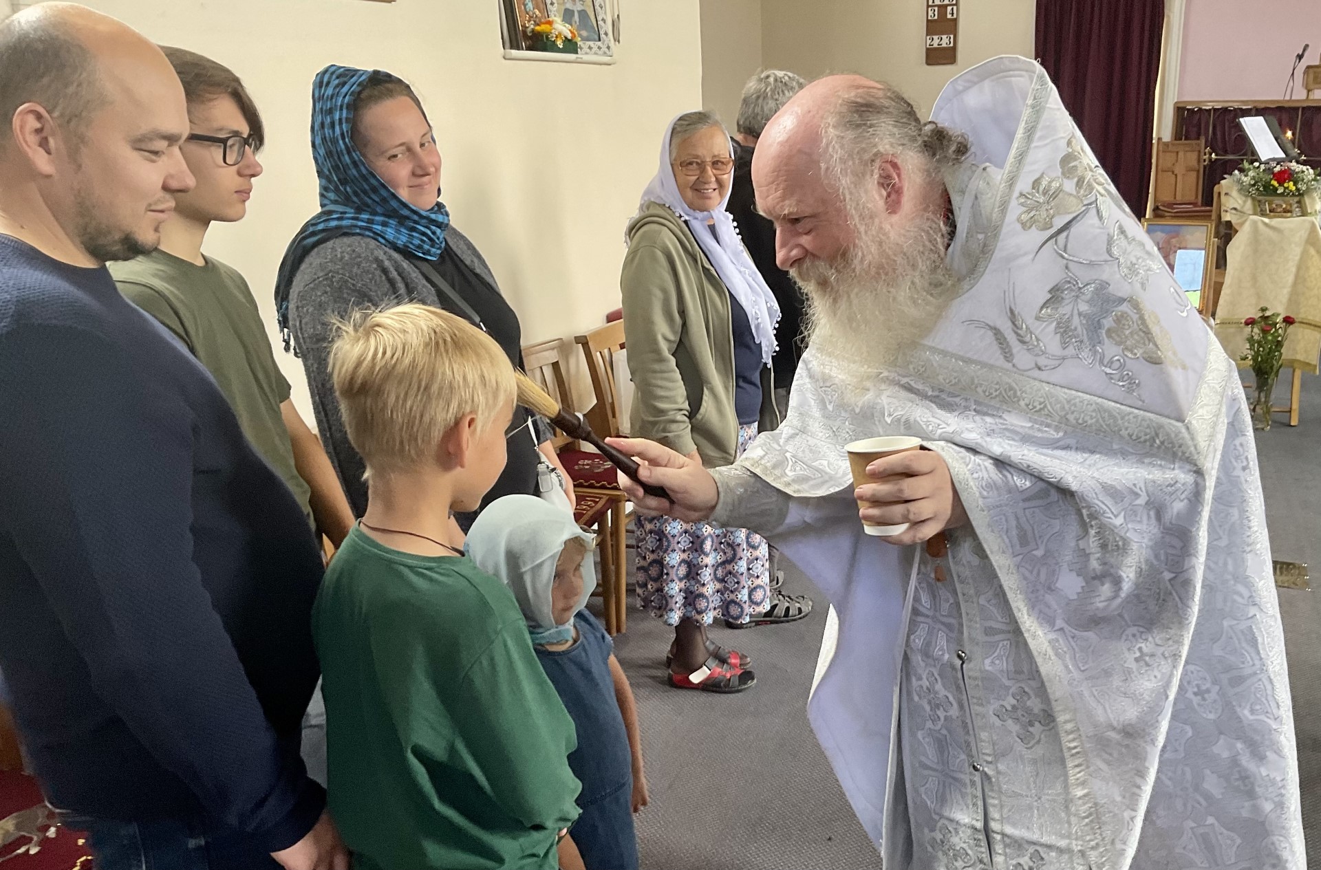 Our small choir chanted beautifully, and our solitary but extremely competent oltarnik ably coped with one hieromonk, a hierodeacon and a deacon, and we now have little Yuriy lined up to help in the altar, under papa’s watchful eye! We very much look forward to the return of our other oltarniky.