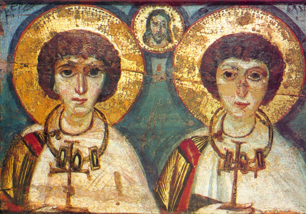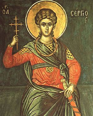 Sessional Hymn, Tone VIII, Spec. Mel. “Of the Wisdom…”: Come, ye who love the martyrs, and let us honor the holy athletes Sergius and Bacchus, the noetic pearls of the Lord, for they manfully trampled the falsehood of the enemy underfoot and destroyed all the might of the idols; wherefore, having received crowns of victory from heaven, as is meet, they join chorus with the angels. With them let us all cry out: Entreat Christ God, that He grant remission of transgressions unto those who with love honor your holy memory. (Twice)