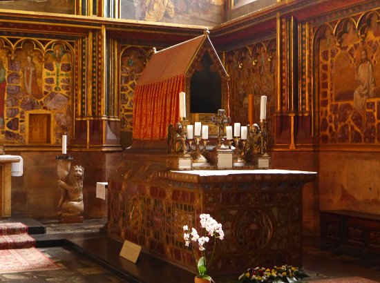 Rejoice, thou who art a refuge for those in misfortunes, whose tomb emanates divine fire scorching the wiles of the godless and shining like a warm jubilant light protecting us from sinful darkness.