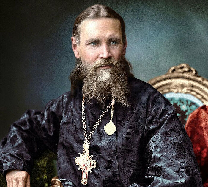 Kontakion 9: Seeing the increase of ungodliness taking hold of thy nation, good pastor, thou didst appear to a small flock, for faithlessness and abominable sin ensnared many, but thirsting for their return to piety, thou didst boldly call all to repentance, ceaselessly crying with sorrow: “O miserable ones sitting in darkness, ye are bound by your fear and silence, how could ye not see the light of Christ and His Glory? Receive your sight, and beholding Christ our God, repent, turn away from your evil paths and ceaselessly glorify God”: Alleluia!