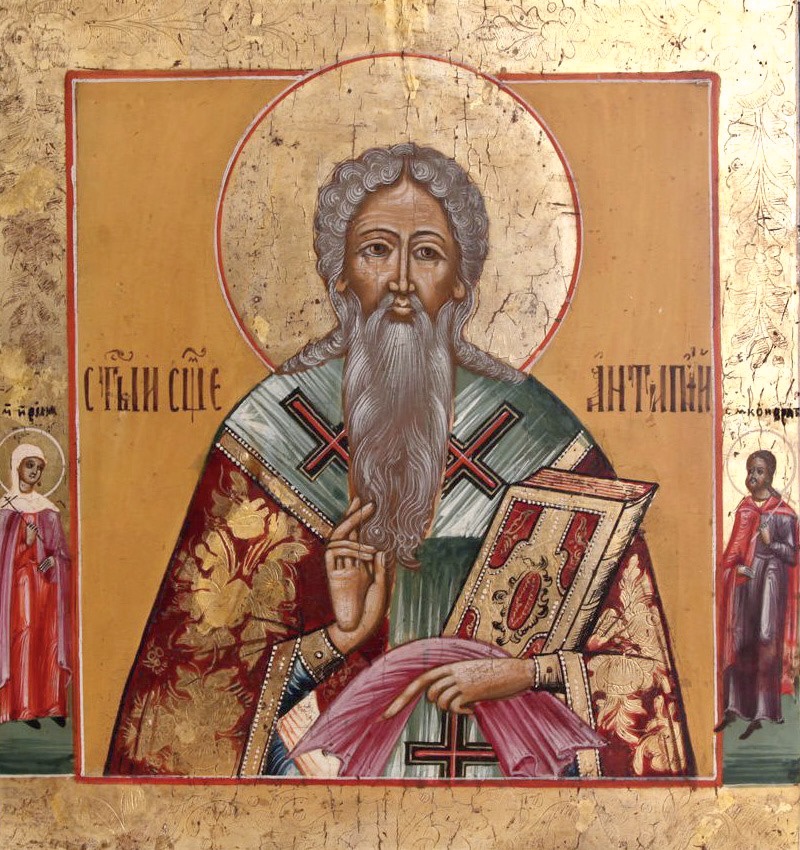 The Hieromartyr Antipas, a disciple of the holy Apostle John the Theologian (September 26), was bishop of the Church of Pergamum during the reign of the emperor Nero (54-68).