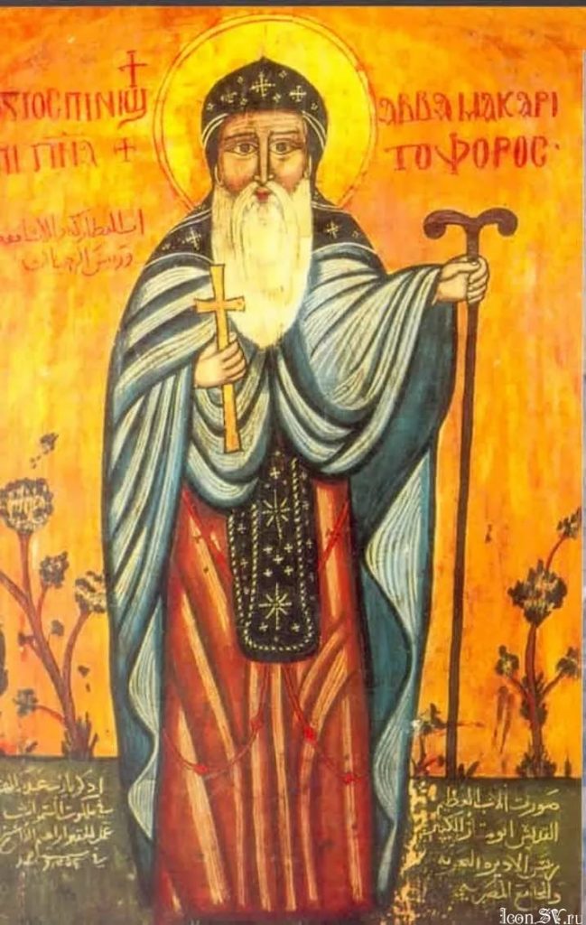 Saint Macarius the Great of Egypt was born in the early fourth century in the village of Ptinapor in Egypt. At the wish of his parents he entered into marriage, but was soon widowed. After he buried his wife, Macarius told himself, “Take heed, Macarius, and have care for your soul. It is fitting that you forsake worldly life.”