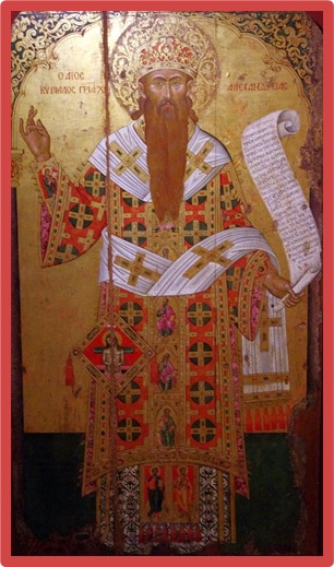 Saint Cyril, Archbishop of Alexandria, a distinguished champion of Orthodoxy and a great teacher of the Church, came from an illustrious and pious Christian family. He studied the secular sciences, including philosophy, but most of all he strove to acquire knowledge of the Holy Scriptures and the truths of the Christian Faith. In his youth Cyril entered the monastery of Macarius in the Nitreia hills, where he stayed for six years. Theophilus (385-412), the Patriarch of Alexandria, ordained him as a deacon, numbered him among the clergy and entrusted him to preach.