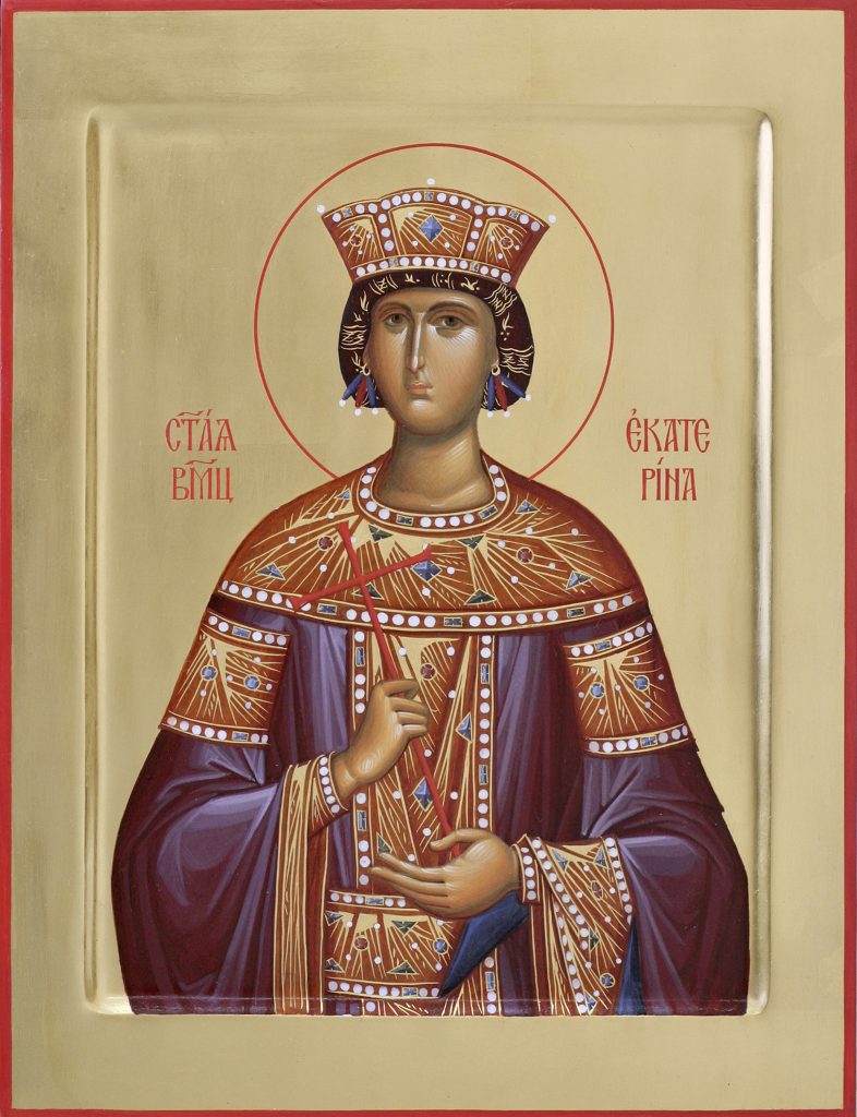 The Holy Great-Martyr Catherine was the daughter of the governor of Alexandrian Egypt Constus during the reign of the emperor Maximian (305-313). Living in the capital – the centre of Hellenistic knowledge, and possessed of an uncommon beauty and intellect, Catherine received a most splendid of educations, having studied the works of the finest philosophers and teachers of antiquity. Young men from the most worthy families of the empire sought the hand of the beautiful Catherine, but none of them was chosen. She declared to her parents that she would be agreeable to enter into marriage only with someone who surpassed her in illustriousness, wealth, comeliness and wisdom.