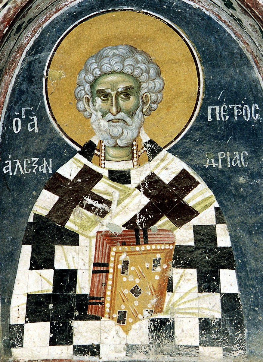 Saint Peter, a great champion of Orthodoxy, is known also as a profound theologian. Passages from his book, “On the Divinity (of Jesus Christ)”, were consulted at the Councils of Ephesus and Chalcedon. Of all his works, the most widely known and highly esteemed by the Church are his “Penitential Canons”.