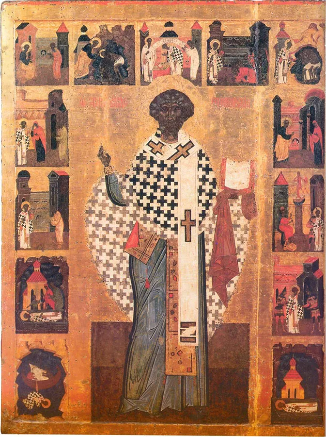 During the reign of the Byzantine Emperor Nicephorus (802-811), by divine providence, the sea failed to withdraw, and the relics of Saint Clement became inaccessible for fifty years. In the time of the emperor Michael and his mother Theodora (855-867), Saints Cyril and Methodius visited Cherson. When they learned of the concealed relics of Saint Clement, they asked Bishop George of Cherson to pray that the Lord would show them the relics of the hieromartyr.
