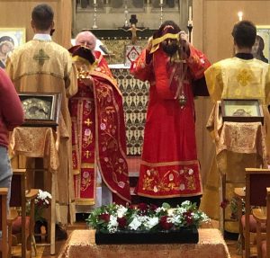 We recently observed that such joyful community celebration seems to be the character of every gathering at St Mary’s, where parishioners clearly feel at home. This is why it was such a joy to celebrate Holy Week and Pascha in the great Victorian sanctuary, gathering in the choir-stalls and celebrating at the high-altar. Following this great success, our weekday Liturgies for feasts have been celebrated at St Mary’s, with a festive trapeza following each Liturgy in the parish room.