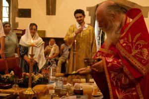 With a reduction of the number of Liturgies in Llanelli, we are benefitting from having Father Luke with us, and are very happy to have some of the faithful from further west joining us every few weeks, with Nicholas and Silouana assisting with reading the Hours and thanksgiving prayers, and Isaiah taking photographs for our local Facebook pages.