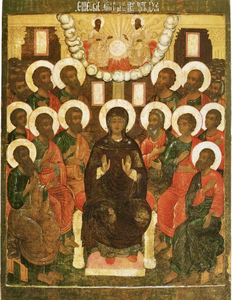 On this Great Feast, we celebrate the sending of the Holy Spirit, not simply as a foundational, historic event in the life of the Church, but as the continuing gift of God’s Grace and Divine Power, ever-outpoured and ever-giving: in the transformative cleansing of Holy Baptism, as our catechumens are born again, through water and the Spirit; in the restorative Grace of confession trough the Mystery of Repentance; in the consecrating Divine Grace through which bread and wine become the Very Body and Blood of the Saviour, Who promised us the Comforter at His Ascension; in the Grace with which God blesses us in prayer and liturgy, in which come together to worship Him, in Spirit and in Truth.