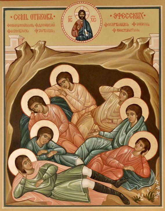 Then the emperor gave precious garments of gold and silver, and ordered that seven chests be made of the same, to have the relics of the Saints placed in. But that night, the Saints appeared to the emperor and said: “Leave us, O Emperor, in this cave, in which we arose.” After many Bishops and authorities gathered, the emperor had the relics of the Saints placed in the ground of the cave, as they revealed to him in the vision. And making a joyous feast, he gave hospitality to the poor of Ephesus, and brought joy to all the people, lovingly honoring them in very expensive and royal ways. He redeemed also from he prisons the imprisoned Bishops, for they proclaimed the resurrection of the dead. This was followed by a common feast, glorifying and blessing our Lord Jesus Christ.