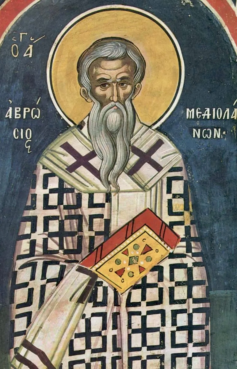 The repose of Saint Ambrose, who departed to the Lord on the night of Holy Pascha, was accompanied by many miracles. He even appeared in a vision to the children being baptized that night. The saint was buried in the Ambrosian Basilica in Mediolanum, beneath the altar, between the Martyrs Protasius and Gervasius (October 14).