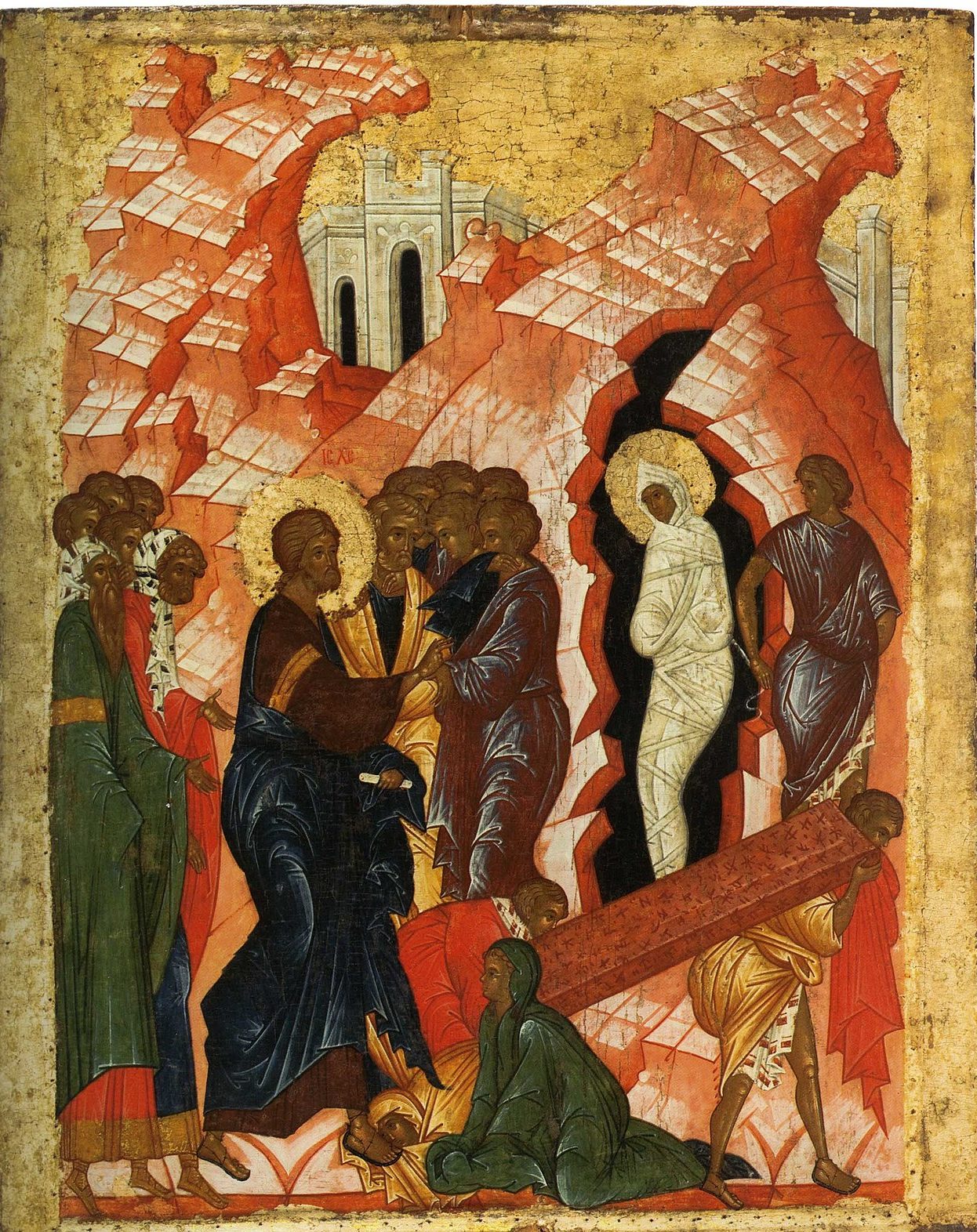Though Thou art the Abyss of knowledge, Thou dost ask where they have laid the body of Lazarus.  For it was Thy purpose, O Giver of Life, to raise him from the dead.