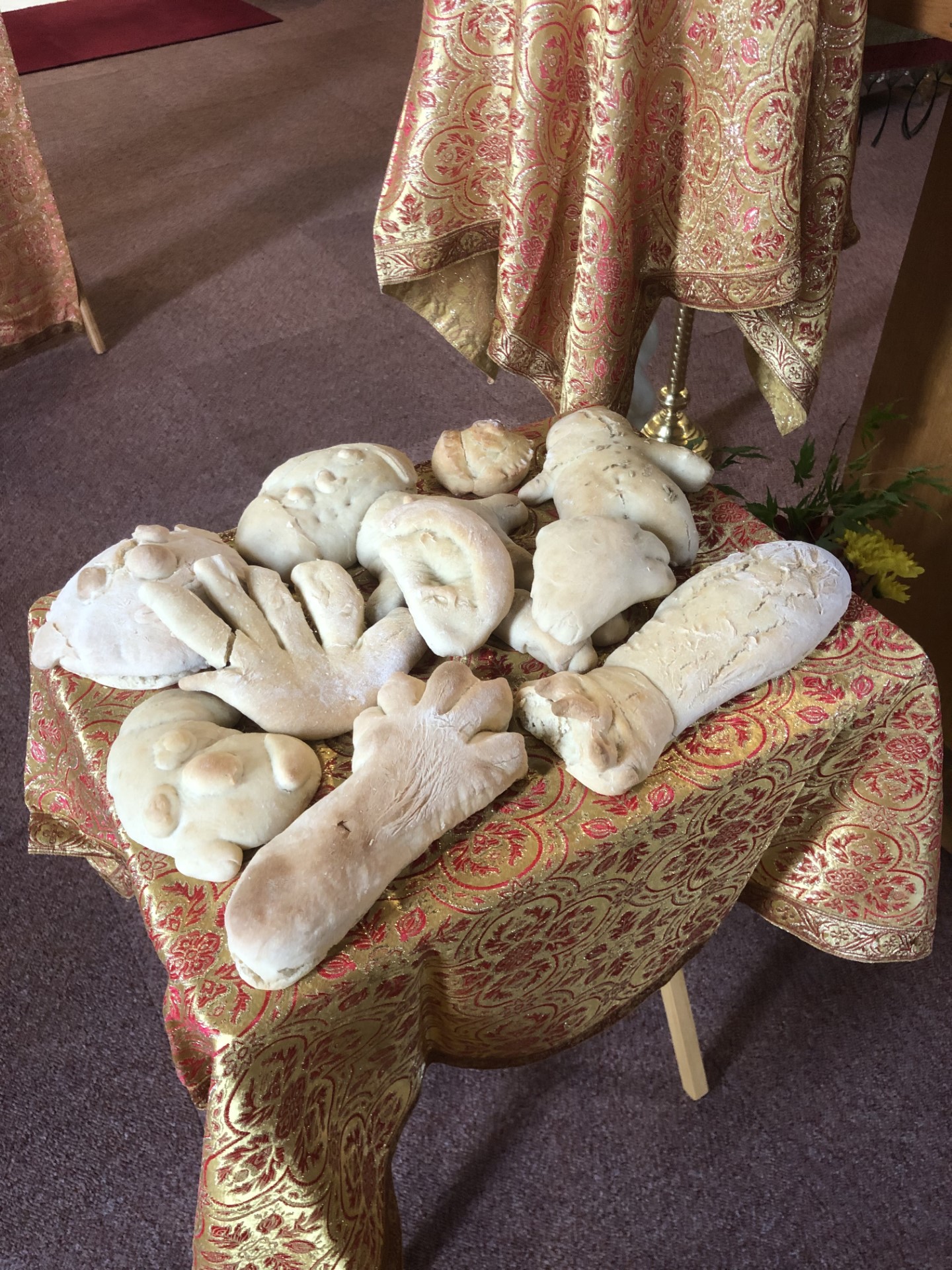 After the homily, we chanted a moleben to St Calogero, including the whole ancient canon, by Sergios the Monk, telling the story of st Calogero’s life and miracles, blessing the bread ex votos baked by the children.