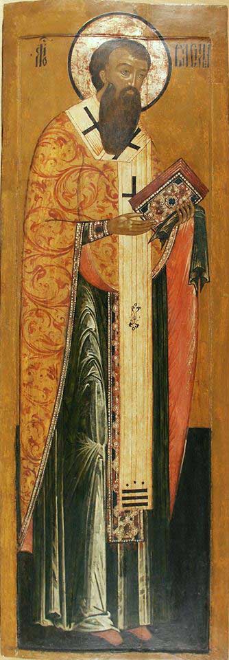 Troparion, Tone I: Thy sound hath gone forth into all the earth, which hath received thy discourse, whereby thou didst divinely teach and make clear the nature of things, and didst adorn the ways of men. O venerable father, thou royal priesthood, entreat Christ God, that our souls be saved.