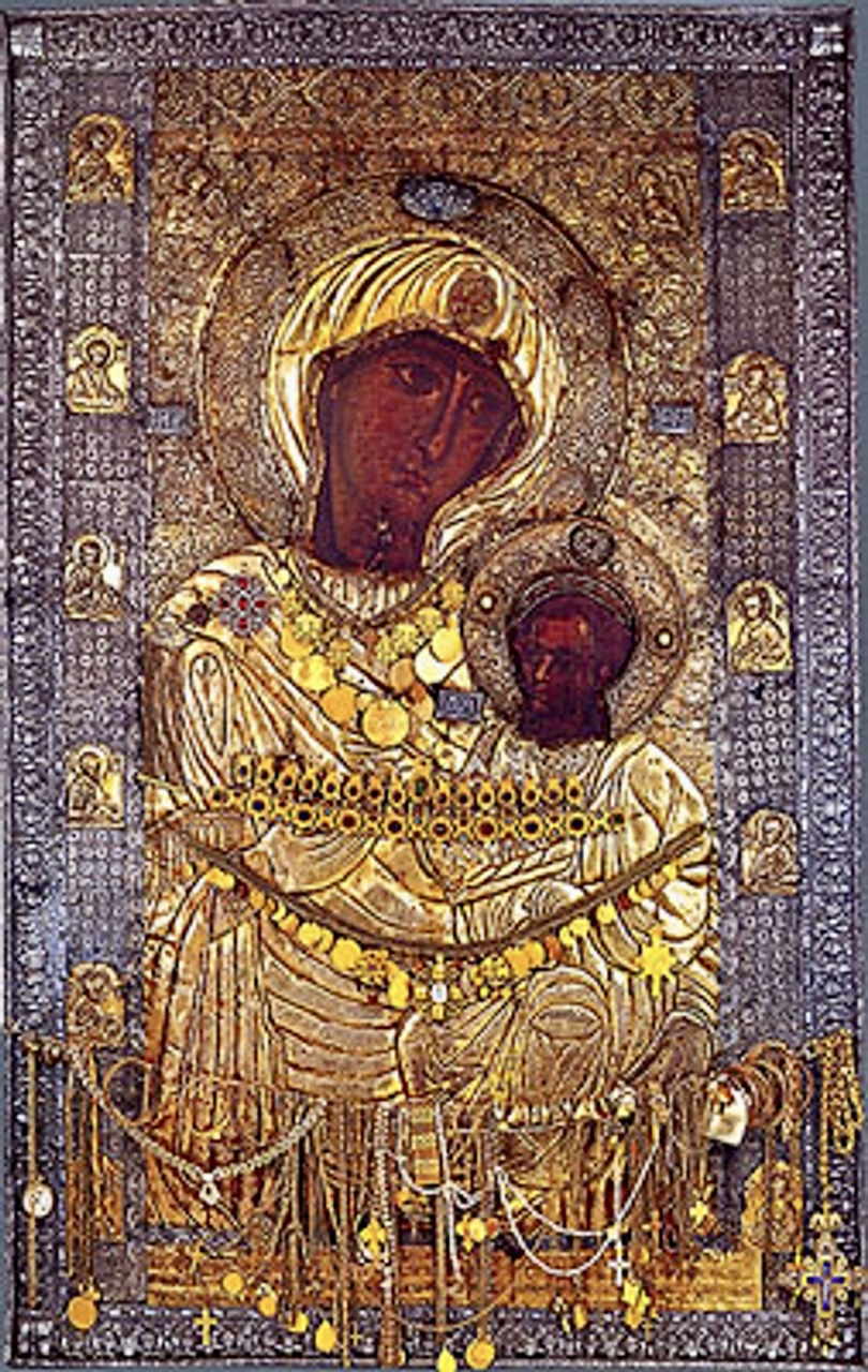 O pure one, look upon the people of thy flock who wake at dawn out of the night, and who surround thy divinely praised icon, entreating remission of their sins, emendation of life and a share in divine glory. Yea, thrust us not away from thy face, O Mother of the never-waning Light.