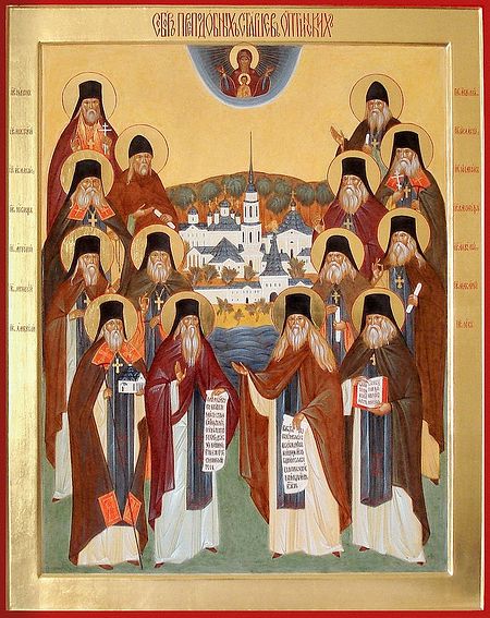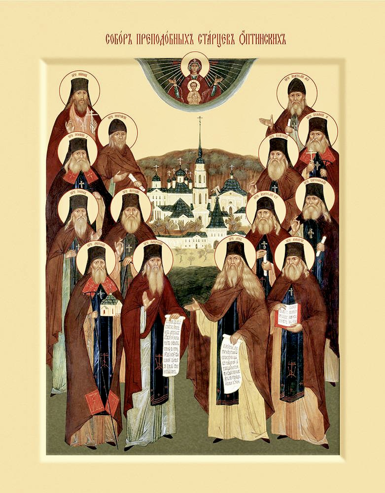 Troparion, Tone I: Abiding in unceasing prayer, and embracing the wicked as well as the good with love, O venerable elders of Optina, ye served God and your neighbours, and through vigils, tears and fasting received the gift of divers miracles. Glory to Him Who hath given us such mediators! Glory to Him Who hath glorified you! Glory to God Who is wondrous in His saints!