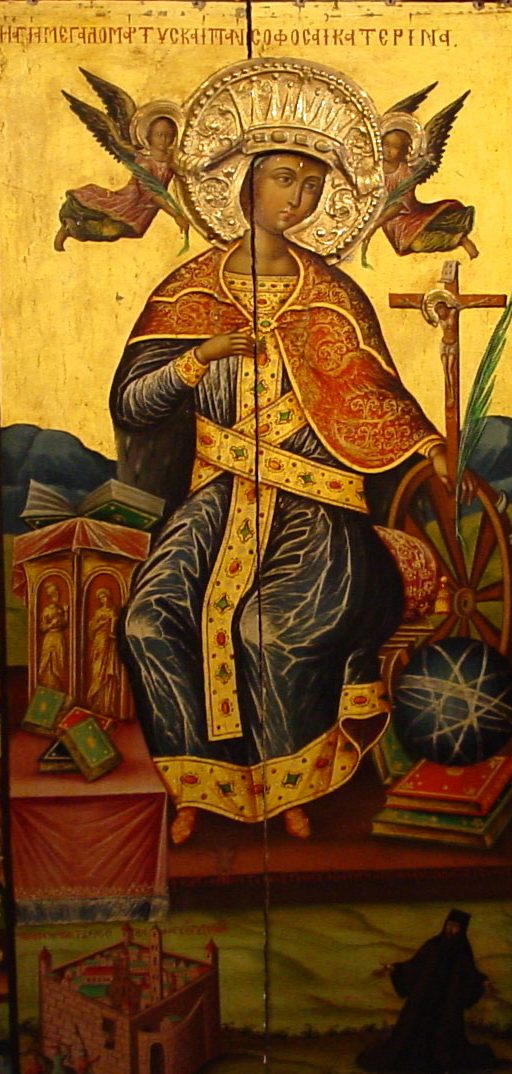 Kontakion of the Great Martyr Katherine, in Tone II, Spec. Mel. “Seeking the highest…”: O ye who love the martyrs, * raise up an honored chorus in a most godly manner, * honoring the all-wise Katherine; * for in the arena she preached Christ and trod upon the serpent, ** trampling down the knowledge of the rhetors.