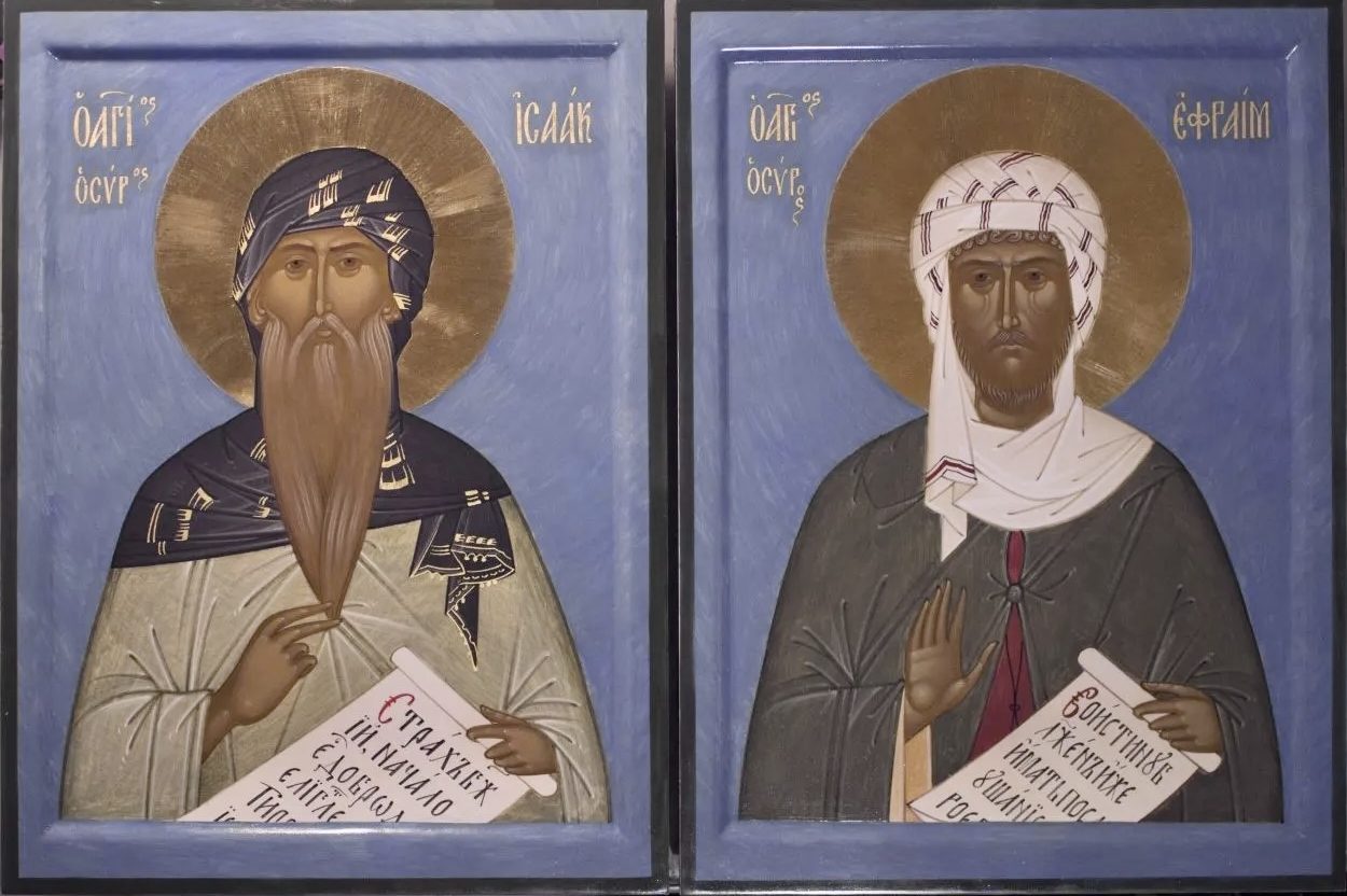 Ikos: Thou wast revealed to be an angel in the flesh in thine ascetic labours, O Godbearing Isaac, and by thine angelic voice hast thou set before us the words of salvation, whereby guided to a higher life, we cry out to thee: Rejoice, star coming forth from Syria; rejoice, lamp of stillness! Rejoice, thou who art more sublime than earthly thoughts; Rejoice, partaker of heavenly enlightenment! Rejoice, divinely inscribed pillar of hesychasts; Rejoice, mouth flowing with the honey of spiritual teachings! Rejoice, for thou wast filled with God-given wisdom; Rejoice, for thou deliverest from the evil of the passions! Rejoice, most fervent of the servants of Christ; Rejoice, our godly teacher! Rejoice, wise God-bearer Isaac; Rejoice, our instructor, guided by God! Rejoice, O divinely wise father!